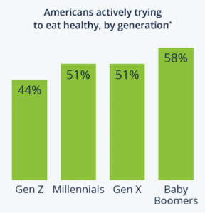 ชาวอเมริกันที่รับประทานอาหารเพื่อสุขภาพโดยแบ่งตามช่างอายุ ในปี 2565
