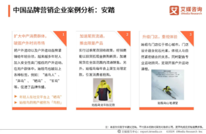 กรณีศึกษาบริษัทการตลาดแบรนด์จีน: ANTA ANTA (China) Co., Ltd. ก่อตั้งขึ้นในปี 2534 เป็นบริษัทกลุ่มผลิตภัณฑ์กีฬาที่ครอบคลุมหลายแบรนด์ มีความเชี่ยวชาญด้านการออกแบบ การผลิต และการขายรองเท้ากีฬา เครื่องแต่งกาย เครื่องประดับ และอุปกรณ์กีฬาอื่น ๆ ต่อมาในปี 2552 Anta เข้าซื้อกิจการ FILA ซึ่งถือเป็นการเปลี่ยนผ่านของแบรนด์จากกีฬาอาชีพไปสู่กีฬาแฟชั่น หลังจากพัฒนามากว่า 30 ปี Anta มีแบรนด์ทั้งหมด 25 แบรนด์ เช่น FILA, Anta, Arc'teryx และ Wilson เป็นต้น แบรนด์ได้เจาะตลาดหลายระดับอย่างเต็มที่เพื่อตอบสนองความสนใจและความต้องการของผู้บริโภคกลุ่มต่าง ๆ ในปี 2562 กลุ่มความร่วมมือที่นำโดย Anta Sports เข้าซื้อกิจการ Amer Sports Corporation (亚玛芬体育) ซึ่งเป็นบริษัทแม่ของแบรนด์ Arc'teryx ได้สำเร็จ นับตั้งแต่นั้นเป็นต้นมา ความสามารถด้านการตลาดและการประชาสัมพันธ์ของ Anta Group ได้เพิ่มประสิทธิภาพของแบรนด์ Arc'teryx อย่างมาก สินค้าได้รับความนิยมจากผู้บริโภคในจีนเป็นอย่างมาก ทำให้เกิดสถานการณ์ที่อุปสงค์มีมากกว่าอุปทาน