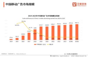 ขนาดตลาดโฆษณาบนมือถือของจีน จากข้อมูลแสดงให้เห็นว่าอัตราการเติบโตของตลาดโฆษณาบนมือถือของจีนชะลอตัวลงในช่วงไม่กี่ปีที่ผ่านมา โดยมีมูลค่าแตะระดับ 464.66 พันล้านหยวน (ประมาณ 2.323 ล้านล้านบาท) ในปี 2566 โดยเพิ่มขึ้นร้อยละ 2.7 เมื่อเทียบกับปีก่อนหน้า นักวิเคราะห์เชื่อว่าอุตสาหกรรมโฆษณาบนมือถือพัฒนาตามปริมาณการใช้งานอินเทอร์เน็ตบนมือถือที่เพิ่มขึ้นอย่างรวดเร็วในปี 2558 และขนาดตลาดโดยรวมก็เติบโตขึ้นอย่างรวดเร็ว เนื่องจากเงินปันผลจากการเข้าชมค่อย ๆ ลดลง การโฆษณาบนมือถือจึงได้หมดยุคแห่งการแข่งขันด้านการเข้าชม อุตสาหกรรมโดยรวม และได้เข้าสู่ขั้นตอนของการกำกับดูแลนโยบายและการแข่งขันด้านเนื้อหาที่เข้มแข็งขึ้น โดยมีอัตราการเติบโตที่มีแนวโน้มว่าจะคงที่
