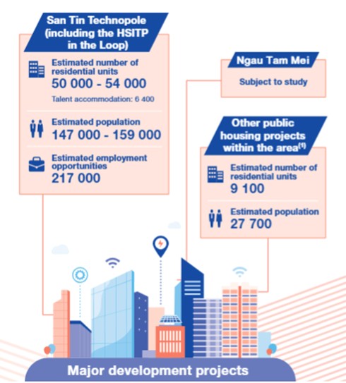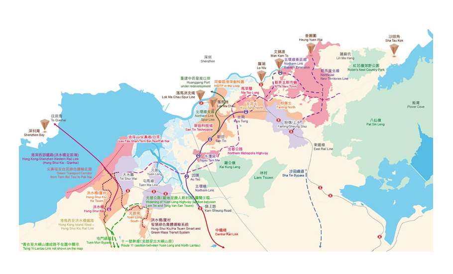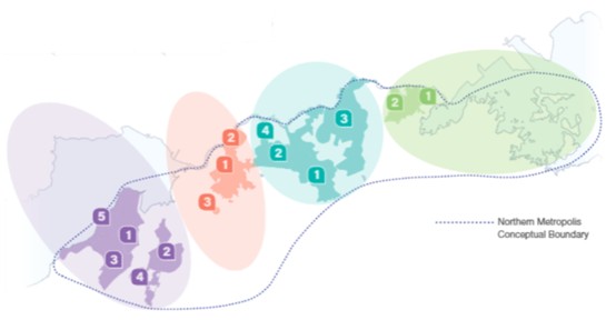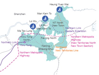 การพัฒนาพื้นที่นี้ยังรวมถึงเมืองใหม่ New Territories North (NTN) และเขตเศรษฐกิจ บริเวณจุดควบคุมชายแดน ซึ่งจะรองรับธุรกิจที่ต้องใช้พื้นที่ขนาดใหญ่และสามารถเชื่อมต่อกับ อุตสาหกรรมด้านนวัตกรรมและเทคโนโลยีของ San Tin Technopole ได้อย่างมีประสิทธิภาพ นอกจากนี้ พื้นที่ใกล้เคียงยังมีศักยภาพสูงสําหรับการพัฒนาแหล่งค้าปลีก บริการสุขภาพ และ อุตสาหกรรมการท่องเที่ยวเพื่อรองรับผู้บริโภคข้ามพรมแดนจากเซินเจิ้น