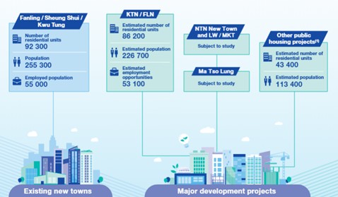 รัฐบาลยังให้ความสําคัญกับโครงสร้างพื้นฐานด้านคมนาคม โดยมีแผนพัฒนาสถานี Kwu Tung ซึ่งคาดว่าจะแล้วเสร็จภายในปี 2570 รวมถึงขยายเครือข่ายรถไฟและถนนเพื่อเชื่อมต่อ พื้นที่สําคัญ เช่น Northern Link Extension และ Northern Metropolis Highway ซึ่งจะช่วย สนับสนุนการพัฒนาเศรษฐกิจของภูมิภาค