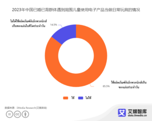 เด็ก ๆ ใช้ผลิตภัณฑ์อิเล็กทรอนิกส์เป็นของเล่นประจำวัน ในช่วงไม่กี่ปีที่ผ่านมา การพัฒนาอินเทอร์เน็ตที่เฟื่องฟูและความนิยมอย่างรวดเร็วของสมาร์ทโฟนส่งผลกระทบอย่างมากต่อตลาดของเล่นเด็กแบบดั้งเดิม ในปี 2566 พ่อแม่ชาวจีนร้อยละ 85.5 พบว่าเด็ก ๆ รอบตัวพวกเขาใช้ผลิตภัณฑ์อิเล็กทรอนิกส์เป็นของเล่นประจำวัน และมีเพียงผู้บริโภคร้อยละ 14.5 กล่าวว่าเด็กรอบตัวไม่ได้ใช้ผลิตภัณฑ์อิเล็กทรอนิกส์เป็นของเล่นในชีวิตประจำวัน ปัจจุบันผลิตภัณฑ์อิเล็กทรอนิกส์มีบทบาทสำคัญในชีวิตประจำวันของเด็ก ๆ มากขึ้น ซึ่งยากต่อการแก้ไข อย่างไรก็ตามควรสังเกตว่าการพัฒนาทางร่างกายและจิตใจของเด็กยังไม่บรรลุนิติภาวะหากพวกเขาใช้ผลิตภัณฑ์อิเล็กทรอนิกส์เป็นของเล่นประจำวันมากเกินไปอาจทำให้สายตาสั้นลงและขาดการออกกำลังกายทุกวัน นอกจากนี้ยังไม่เอื้อต่อการฝึกนิสัยการเรียนรู้ที่ดีและมีคุณภาพซึ่งจะส่งผลต่อการเจริญเติบโตของเด็กมากขึ้น