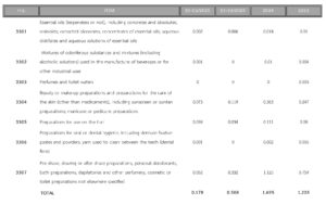 | 3307 | OTHER TOILET AND COSMETIC PREPARATIONS (including preparations for perfuming or deodorising rooms) | 6,5 % |