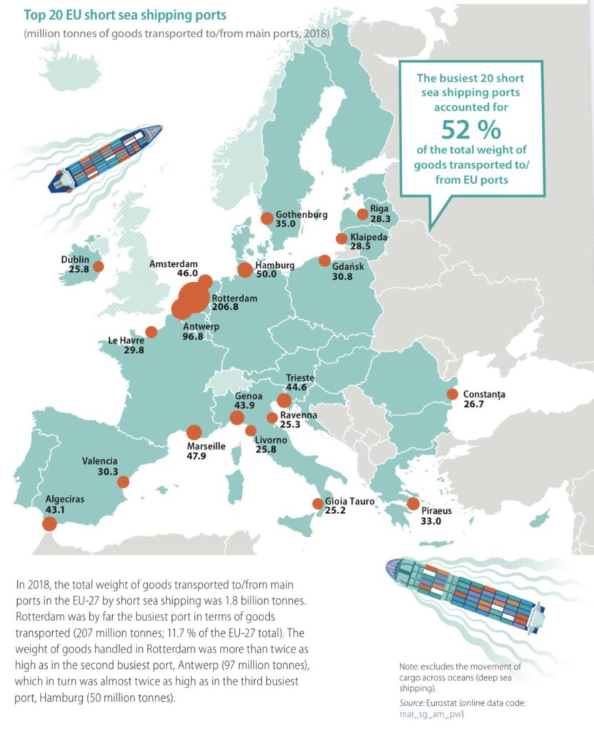 รูปภาพที่ 1: ที่ตั้งท่าเรือขนถ่ายสินค้าในทวีปยุโรป ที่มาของข้อมูล: สำนักงานสถิติ คณะกรรมาธิการยุโรป (Eurostat)