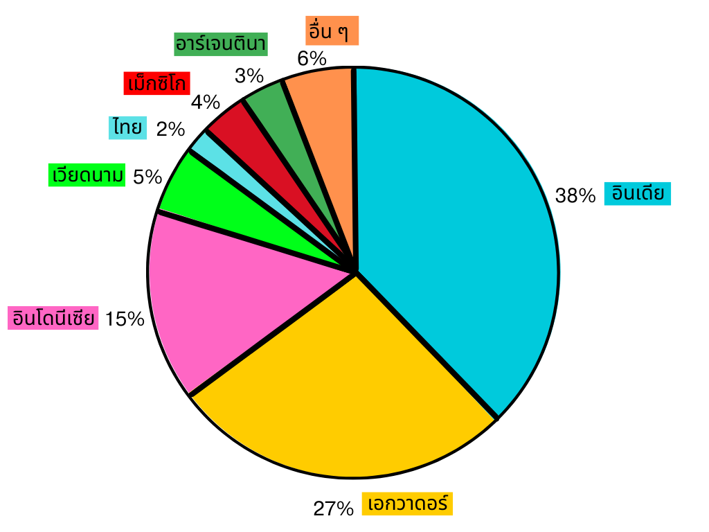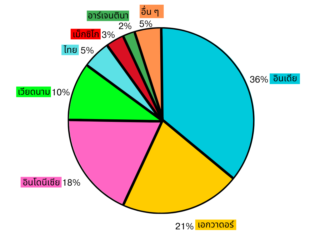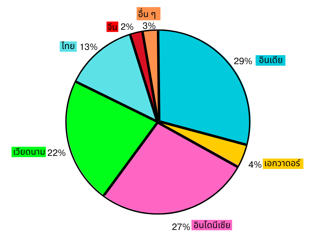 1.1 ประเทศที่ทำการเพาะเลี้ยงกุ้ง (Harvesting Nation)