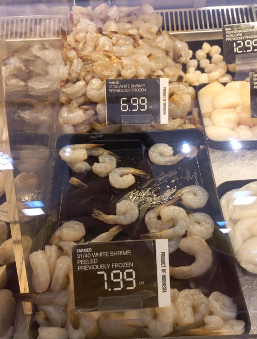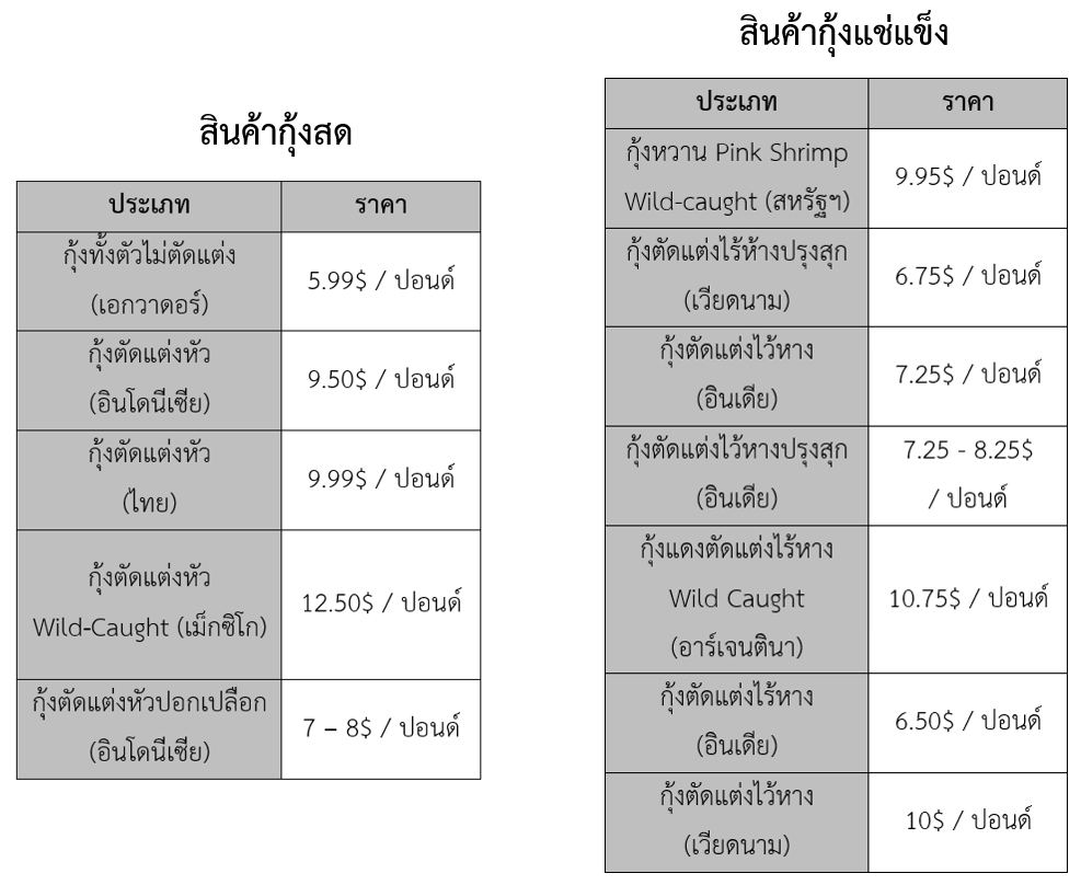 “ตัวอย่างสินค้ากุ้งสดในตลาดสหรัฐฯ”