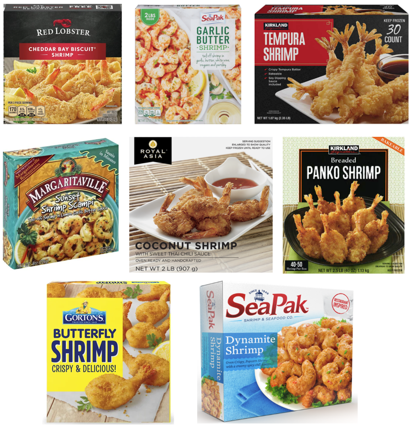 “ตัวอย่างสินค้ากุ้งแช่แข็งในตลาดสหรัฐฯ”