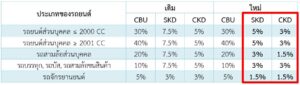 กระทรวงการวางแผนและการคลังเมียนมา ได้ประกาศลดภาษีศุลกากรการนำเข้าชิ้นส่วนรถยนต์ เพื่อส่งเสริมการประกอบรถยนต์ในประเทศเมียนมา ช่วงวันที่ 1 มิ.ย. 68 ถึง 31 พ.ค. 69 (ประกาศ 39/2025) โดย CBU (Completely Built Unit) หรือรถยนต์สำเร็จรูปจากต่างประเทศ ยังคงภาษีนำเข้าเดิม ไม่ได้ลดภาษี ส่วน SKD (Semi Knocked Down) หรือชิ้นส่วนรถยนต์จากต่างประเทศทั้งหมด และ CKD (Completely Knocked Down) หรือชิ้นส่วนรถยนต์จากต่างประเทศบางส่วน ซึ่งนำเข้าเพื่อประกอบรถภายในประเทศ และใช้ชิ้นส่วนภายในประเทศอย่างน้อย 40% มีการลดภาษีนำเข้า ดังนี้