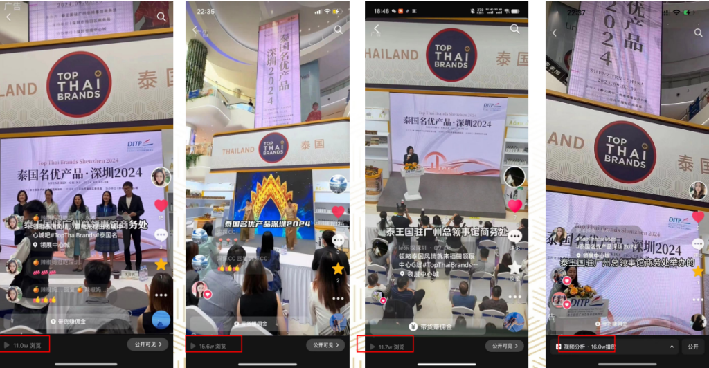 ภายในงานแสดงสินค้าฯ สคต.กวางโจว ยังได้จัดกิจกรรมการเจรจาการค้าผ่านช่องทางออฟไลน์ให้กับผู้ประกอบการไทย – จีน ซึ่งมีผู้นำเข้าและร้านอาหารไทย ที่ได้รับตราสัญลักษณ์ Thai SELECT มณฑลกวางตุ้ง รวมมากกว่า 364 ราย เข้าร่วมงานฯ โดยมีผู้นำเข้าหลายรายสนใจนำเข้าสินค้าไทย โดยผลจากการดำเนินงานฯ มีมูลค่าการสั่งซื้อทันทีมากกว่า 650,000 เหรียญสหรัฐและคาดว่าภายในหนึ่งปี จะมีมูลค่าการสั่งซื้อมากกว่า 8,300,000 เหรียญสหรัฐ นอกจากนี้ ยังมีการจัดประชาสัมพันธ์กิจกรรมโครงการฯ และการประชาสัมพันธ์สินค้าไทยผ่านช่องทางออนไลน์ โดยมีสื่อท้องถิ่นทำการสัมภาษณ์ผู้อำนวยการสำนักงานส่งเสริมการค้าในต่างประเทศ ณ เมืองกวางโจว เพื่อประชาสัมพันธ์การจัดงานแสดงสินค้า Top Thai Brands Shenzhen 2024 และได้มีการประชาสัมพันธ์ผู้ประกอบการไทยที่เข้าร่วมงานจัดแสดงสินค้าฯ ในครั้งนี้ โดยเป็นการเปิดโอกาสให้ผู้ประกอบการไทยได้แสดงศักยภาพของสินค้าไทยให้เป็นที่ประจักษ์ ในหมู่ผู้บริโภคชาวจีน นอกจากนี้ สคต.กวางโจว ยังได้ดำเนินการประชาสัมพันธ์การจัดกิจกรรมผ่านสื่อออนไลน์/ Social Media ต่างๆ อาทิ Douyin/ Weibo/ Wechat ผ่านเครือข่ายและช่องทางการประชาสัมพันธ์ของ KOL/Net Idol ที่มีชื่อเสียงในมณฑลกวางตุ้ง จากแพลตฟอร์มต่างๆ เช่น Xiaohongshu (เสี่ยวหงซู) Douyin (Tiktok) ซึ่งให้การส่งเสริม/สนับสนุนการประชาสัมพันธ์สินค้าไทยในตลาดจีน โดยได้รับกระแสตอบรับจากบริษัทผู้นำเข้า บริษัทตัวแทนจำหน่ายต่างๆ ของจีนเป็นอย่างดี อีกทั้ง ยังช่วยส่งเสริมให้ผู้บริโภคในเมืองรองของจีนสามารถเข้าถึงและสร้างการรับรู้สินค้าไทยผ่านสื่อออนไลน์ในภูมิภาคจีนเพิ่มมากยิ่งขึ้น โดยการดำเนินกิจกรรมประชาสัมพันธ์งานโครงการฯ ผ่านสื่อ Social media ต่างๆ ในครั้งนี้ มีจำนวนการเข้ารับชมทั้งสิ้น (View) 1,966,188 ครั้ง