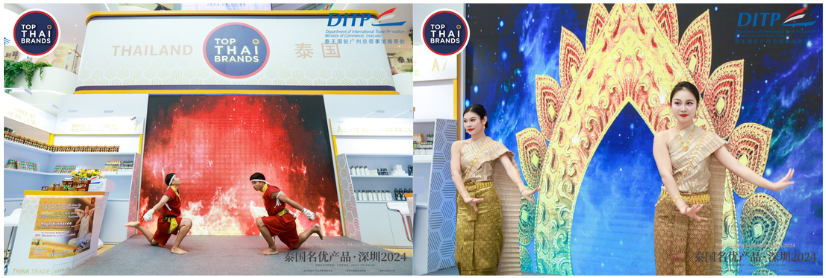 การจัดแสดงสินค้าไทยในปีนี้ สำนักงานส่งเสริมการค้าในต่างประเทศ ณ เมืองกวางโจว ร่วมกับสำนักพัฒนาตลาดและธุรกิจไทยในต่างประเทศ 1 กรมส่งเสริมการค้าระหว่างประเทศ กระทรวงพาณิชย์ ได้จัดตั้งคูหาประเทศไทย ภายใต้แนวคิด “Think Trade, Think Thailand” โดยมีเป้าหมายผลักดันสินค้าไทยเข้าสู่ตลาดจีน และขยายโอกาสให้ผู้ประกอบการไทยเข้าสู่ตลาดจีนมากขึ้น โดยพื้นที่จัดแสดงทั้งหมดของงานในครั้งนี้รวม 200 ตารางเมตร ประกอบด้วย ส่วนจัดแสดงนิทรรศการประชาสัมพันธ์ภาพลักษณ์ประเทศไทย พื้นที่จัดแสดงศักยภาพประเทศไทยด้านการค้า สินค้าและบริการของไทย โดยจัดแสดงข้อมูลที่เกี่ยวข้องต่าง ๆ อาทิ ตราสัญลักษณ์ของกรมส่งเสริมการค้าระหว่างประเทศ เช่น Thai SELECT, Thailand Trust Mark (TTM) , PM Award หรือ DEmark เป็นต้น /แพลตฟอร์มการค้าออนไลน์ของไทย (Thaitrade.com)/ สินค้าและธุรกิจบริการที่มีศักยภาพของไทย และพื้นที่สำหรับจัดแสดงสินค้าไทย โดยปีนี้เป็นปีแรกที่ได้พาผู้ประกอบการไทยที่ผ่านการคัดเลือกจากโครงการ Top Thai Brands Shenzhen 2024 เข้าร่วมแสดงสินค้าไทยในเมืองเซินเจิ้นจำนวน 20 บริษัท แบ่งเป็นกลุ่ม “สินค้าอาหารแปรรูป และ ผลิตภัณฑ์เพื่อสุขภาพและความงาม” ในระดับไฮเอนด์ อาทิ สินค้าเครื่องปรุงรส สินค้าผลไม้ฟรีซดราย (Freeze Dry) ขนมขบเคี้ยวที่ทำจากธัญพืช โดยล้วนแต่เป็นสินค้าที่มีคุณค่าทางโภชนาการทั้งสิ้น และผลิตภัณฑ์เพื่อสุขภาพและความงาม ซึ่งมีกลุ่มลูกค้าเป้าหมาย คือ “ผู้หญิง”และ กลุ่มบริโภคผู้สูงอายุของจีน อาทิ ผลิตภัณฑ์บำรุงและทำความสะอาดผิวที่มีสารสกัดจากธรรมชาติ น้ำมันมะพร้าว และผลิตภัณฑ์จากน้ำมันมะพร้าว ได้แก่ ผลิตภัณฑ์ดูแลเส้นผม ครีมบำรุงผิว ครีมกันแดด ลิปสติก น้ำหอม สบู่ สินค้านวดประคบ สินค้าน้ำมันนวด ยาหม่อง ซึ่งสินค้าเหล่านี้เป็นสินค้าที่มีเอกลักษณ์ความเป็นไทย มีประโยชน์ต่อสุขภาพ จึงทำให้ได้รับความนิยมจากผู้บริโภคกลุ่มผู้หญิงและกลุ่มผู้สูงอายุในเมืองเซินเจิ้นและชาวฮ่องกงที่เข้าร่วมชมงานแสดงฯ เป็นอย่างมาก